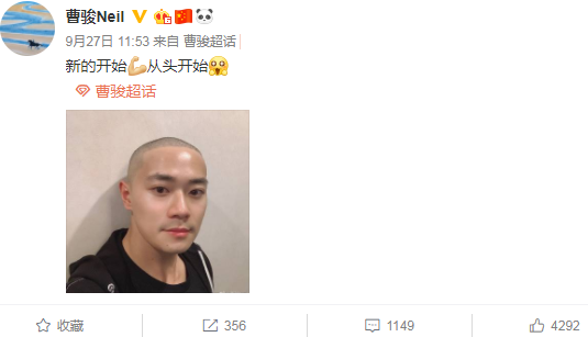 其实,两人在上个月就暴露了一些“征兆”。比如曹骏晒出了自己的光头照,并说新的开始,从头开始。虽然曹骏称是为新剧剃的,其实结合如今的分手,已经暗示了一些问题。