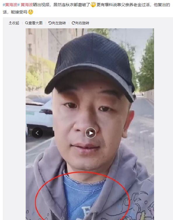 昨天有网友指出,黄海波最近晒出来的视频里面,连里面的衣服的领子都是破损的,随后便有不少媒体转发报道了之前刘江的谈话内容,里面有提到他说黄海波现在的日子过得很难、揭不开锅了~