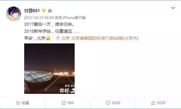 当时回国的她也专门发了一个微博,写道:使命归来,任重道远。