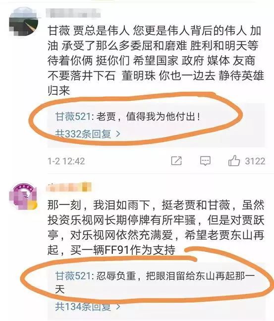 但在甘薇口中,她也是无条件的相信并支持贾跃亭,并称值得为他付出。
