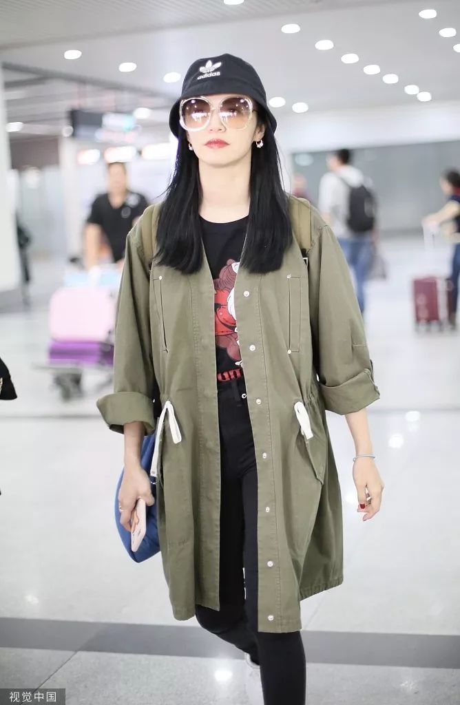 8、姚晨抵福州参加电影节闭幕式 渔夫帽配军绿色风衣休闲大方