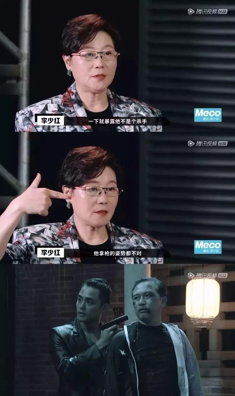 节目中李少红指出他在《破冰行动》拿枪的动作没有设计,作为一个很自信的人,这点他没有反驳。