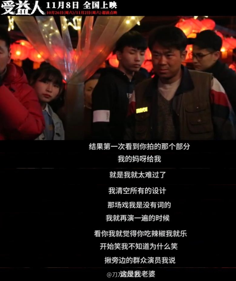 这段演完,导演喊CUT之后,大鹏的情绪久久不能平复,一个人蹲到角落里哭了很久,群众演员大姐还拍着背安慰他。