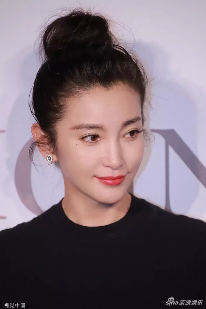 17、46岁李冰冰扎丸子头容颜姣美 对镜浅笑眼神温柔