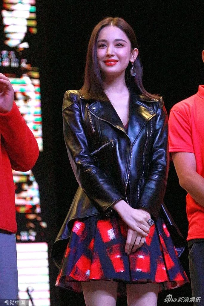 18、古力娜扎红唇浅笑美颜暴击 皮衣搭短裙美丽“冻”人