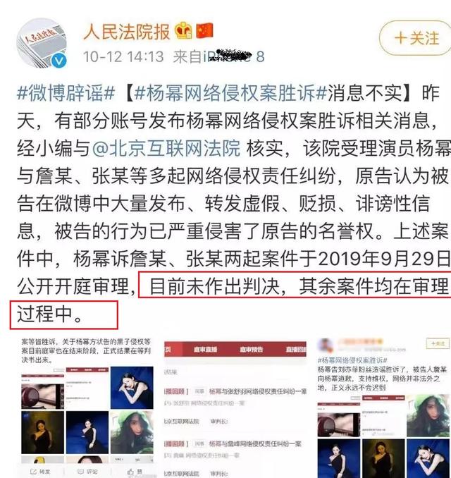 而在几天前,杨幂还因为这场庭审闹了一次乌龙,当时“杨幂网络侵权案胜诉”飚上了热搜榜第4名,话题里面,清一色是杨幂粉丝及各大V统一口径恭喜杨幂维权成功。