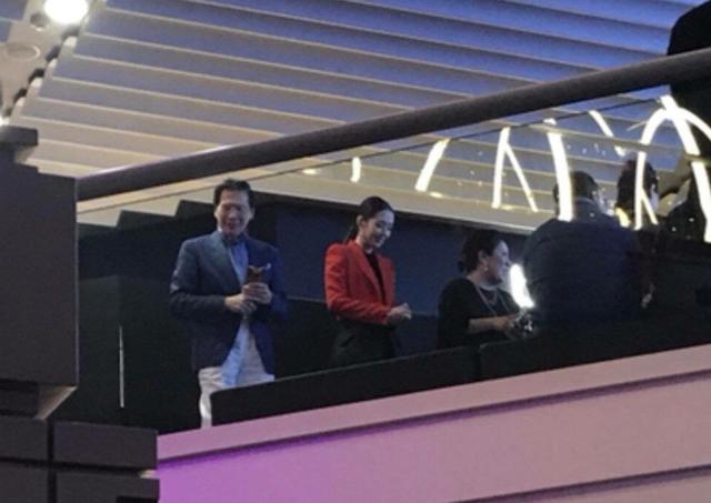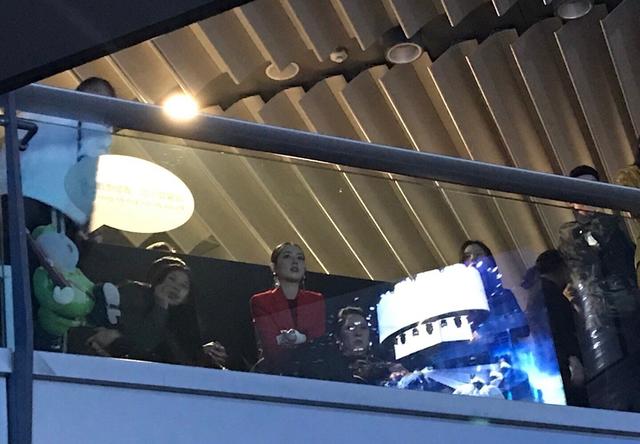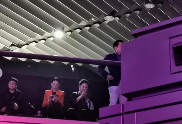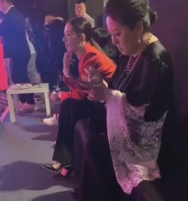郭碧婷和助理在一起,非常关注台上发生的一切。尽管自己不需要上台,但是郭碧婷也打扮得相当精致,不能给老公、给向家丢人。
