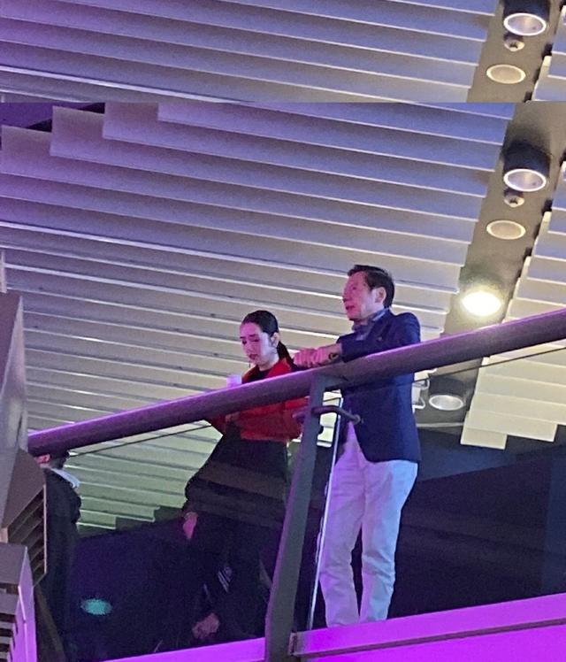 郭碧婷和向华强倚着扶栏,公公和儿媳妇同框,也并没有显得疏远。