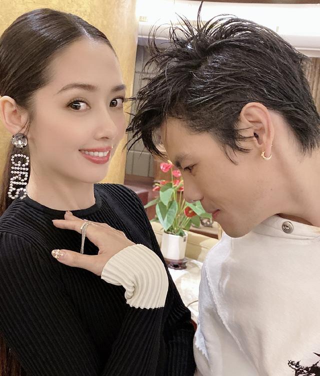这大概是两人的后台照,郭碧婷穿着黑色毛衣,戴着超大的字母耳环,妆容很漂亮,堪称是360度无死角,向佐则穿着白色卫衣,满头都是发胶,戴着耳环,正目不转睛地看着郭碧婷的手。向佐终于从以前的野人形象,变得干净帅气,颜值稍微配得上郭碧婷了!