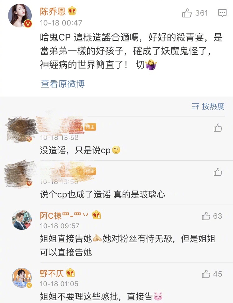 近日,有网友在微博上表示看到陈乔恩和吴磊拥抱的场景,说有没有人想站这对cp的?随后陈乔恩本人在评论区也是怒怼回去了,说什么鬼cp?这样合适嘛?好好的杀青宴,是当弟弟一样的好孩子,却成为了妖魔鬼怪了,神经病的世界简直了。随后居然还被说是她玻璃心了,只是说cp而已?并没有造谣之类的。只能够说,这不是造谣也应该是内涵了吧?