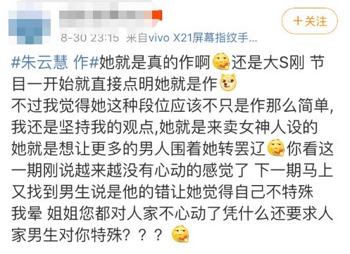 网友认为在他们两人相处的过程中,朱云慧经常表现出任性的一面。