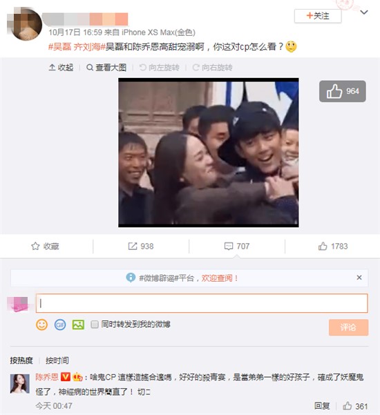 原标题:和小21岁吴磊杀青照被捆绑组CP,陈乔恩亲自下场怒斥“神经病