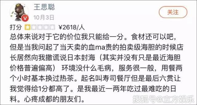 不过,资产问题并不是问题,王思聪出手依旧阔绰。近日,王思聪消费一万五千元吃日料,完后怒给对方一星差评,直言菜品对不起价位。可见,看似消沉的王校长依旧霸气外露敢想敢说,只不过暂时跟娱乐圈相安无事。
