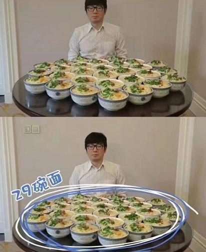 所以接下来的事情果然让他的笑容逐渐消失,当他摘下眼罩的时候,眼前摆着的是证正29碗长寿面,而且还都加了牛肉,剧组也是真的"斥巨资"为胡歌过生日啊!