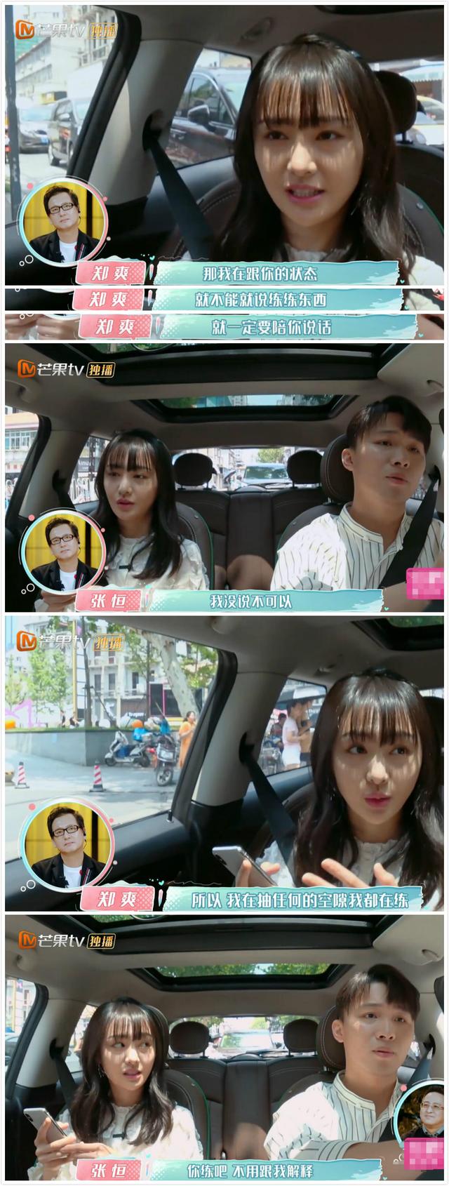 之后张恒在车上跟她说话的时候,郑爽一直在看手机记动作,和他聊天的时候,两人也各说各的,张恒觉得她忽略了自己,情绪就来了,黑着脸说“我感觉你对我的事情好像没什么兴趣”,并且不听郑爽的解释,还称她搞得自己的压力很大。