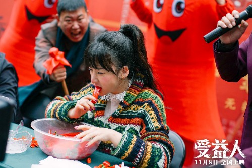 泪点三,吃辣椒比赛瞬间泪崩。《受益人》的感情线,是从欺骗到真爱的过程。那么“骗子”吴海是什么时候才真正爱上岳淼淼的呢?我想是他看到淼淼吃辣椒比赛的那个瞬间。这是电影最大的转折点,吴海开始和钟振江实施计划,他用撞车的小事故完成不在场证明,然而就在这时,看到电视里淼淼去参加吃辣椒比赛,目的是为了赢一辆电动滑板车来方便他做代驾。看到这里瞬间泪崩,剧本太强大了,用一场欺骗,反衬出爱情最动人的力量。于是吴海也迎来了蜕变,把故事引向意外的结局。