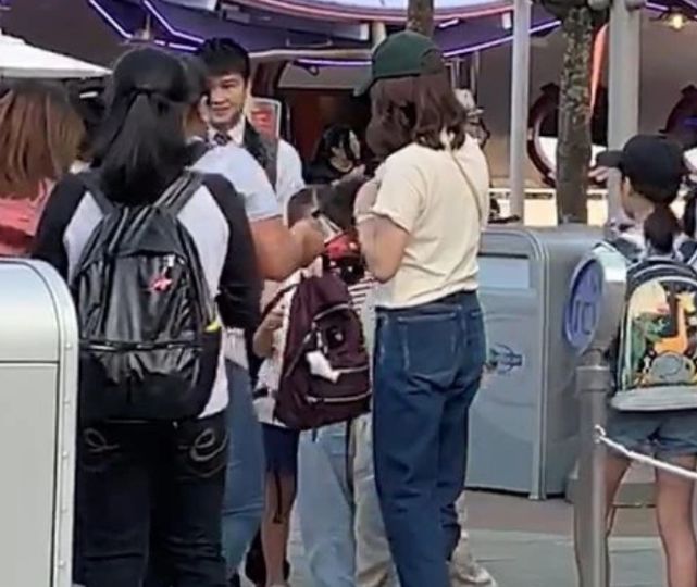 画面中,黎姿穿着浅色系短袖配牛仔裤,青春洋溢,十分减龄。头戴棒球帽,活力满满。从背影看,一双大长腿尽情展现,很是修长。当天,迪士尼游乐场人很多,到处都是前来游玩的人群,黎姿带着三个女儿开心的游逛,十分开心。这身低调装扮也是很接地气了。