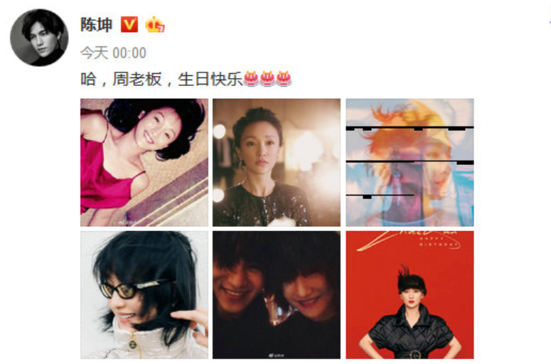 10月18日是周迅45岁的生日,按照往年惯例,零点刚过,好友陈坤随即踩点发文为周迅庆生,配文“哈,周老板,生日快乐!”还配上两人的合照图,照片中两人留着相似的短发,面露微笑,温馨有爱。