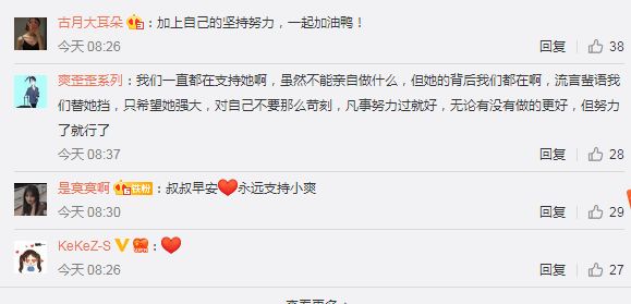 有不少网友留言评论,发文力挺爽爸和小爽,一些网友说道,“爽爸早上好,我们会一直守护小爽的。给她自信”、“我们一直都在支持她啊,虽然不能亲自做什么,但她的背后我们都在啊,流言蜚语我们替她挡,只希望她强大,对自己不要那么苛刻,凡事努力过就好,无论有没有做的更好,但努力了就行”。