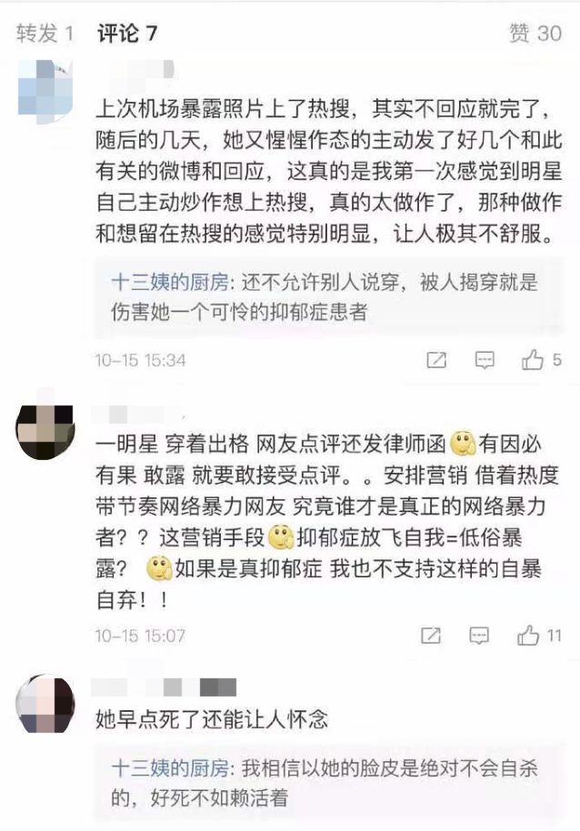 但关于年龄、关于性别、关于长相的嘲笑,因为一些捕风捉影的谣言便出言诋毁,这便绝对算不上是正常的“评论”了。