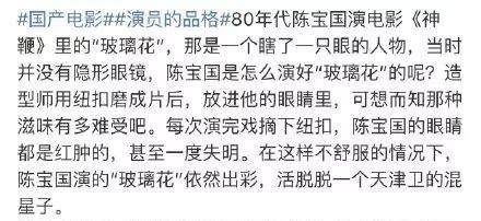 原标题:把纽扣磨成片放在眼睛里做隐形眼镜,陈宝国的“戏骨”
