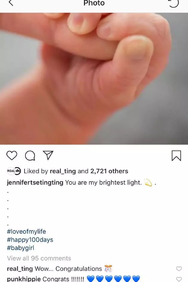 前一阵未婚生女的谢婷婷,算是闷声干了回大事,毫无任何征兆的突然宣布了自己女儿已经百天!6月2日谢婷婷在个人社交网站官宣了生女喜讯:“You are my brightest light。”并晒出一张和小宝宝牵手的照片。从发布的内容中我们可以看出谢婷婷生了一个女孩且已经过了百天:“loveofmylife 、happy100days,babygirl”。