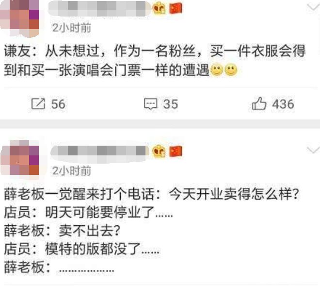 前去抢购的多数都是薛之谦的粉丝,在开店之前就早早地等在门外排队,后来都各自发博感叹:“没想到连买衣服都会遇到和抢演唱会门票一样的遭遇”,如此火爆想必薛之谦自己都始料未及。