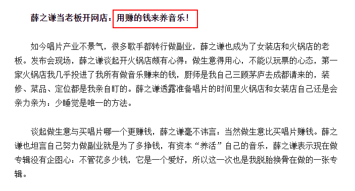 与此同时薛之谦的副业也是经营得风生水起,早在丑闻曝光之前他就已经凭借火锅店赚得盆满钵满,自己甚至在采访中坦言“靠副业养主业”。