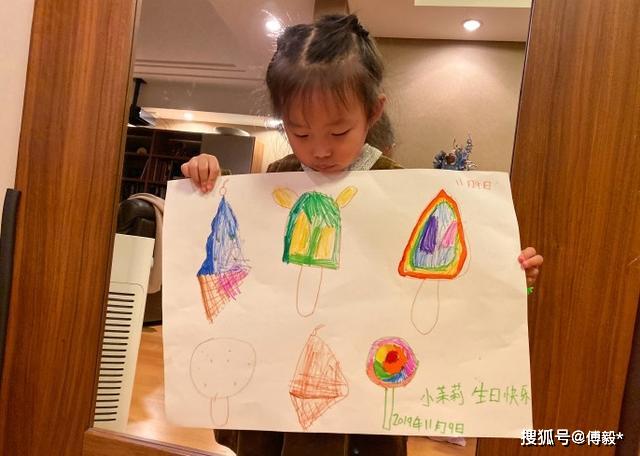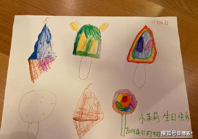 有趣的是,小茉莉对于哥哥的画作还很感谢,她也是举起画作让母亲姚晨拍下了这一刻。小土豆为妹妹一共画了六个冰淇淋,可似乎没有一个是草莓味儿的。不过小茉莉本人相当开心,因为这是兄妹俩情谊的一个见证。