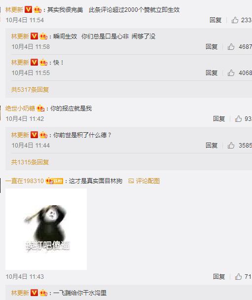 王丽坤这边好事将近,绯闻前任林更新自然要躺枪,甚至还被外界猜测两人没能最终在一起,是因为林更新还不想结婚,毕竟他才31岁,在娱乐圈男星中算是年轻的,不想这么早进入婚姻围城,也能理解,但王丽坤这么年龄形势要严峻些,所以两人有分歧也正常。不过林更新虽然是31岁成年高大男子,但是在微博上真的像个孩子,经常和路人甲粉丝在微博上嘻嘻哈哈互动互怼,看起来确实像还没长大,还不适合做人夫人父。