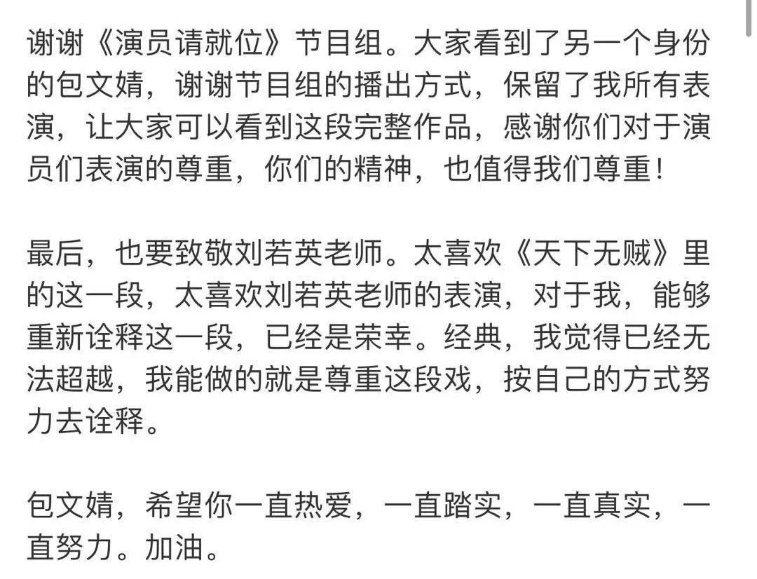 来到《演员请就位》的舞台,包文婧的初心就是想要撕下这些刻板的标签,让更多人看到她的演员身份,看她身上的无限可能性。从观众的反馈和舆论声中可以知道,她做到了!