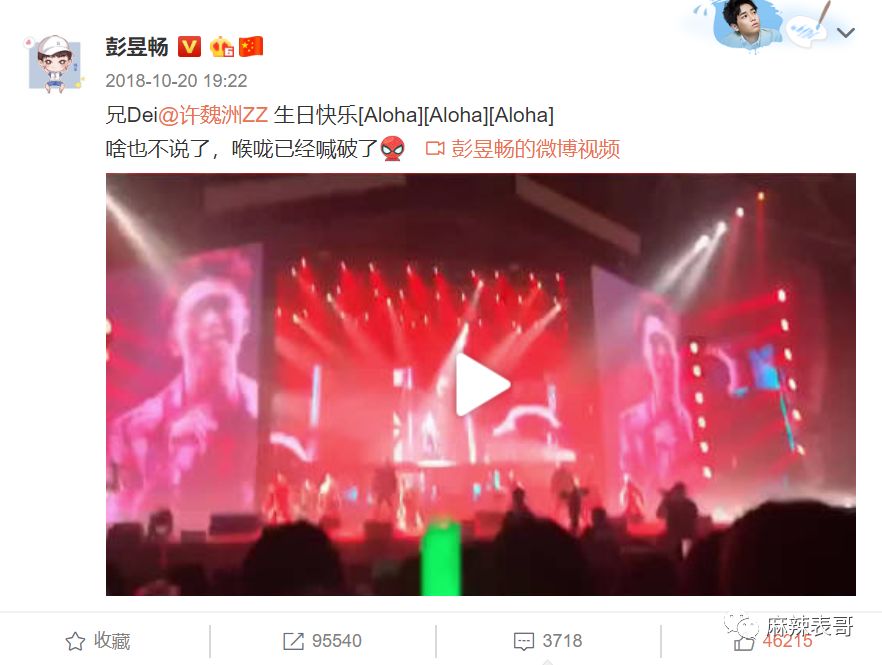 许魏洲办演唱会的时候,彭昱畅差一点把嗓子都喊哑了。
