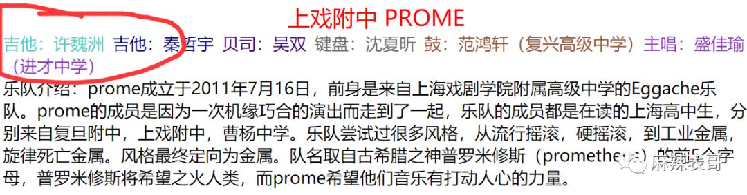 上戏附中有个叫PROME的乐队组合。
