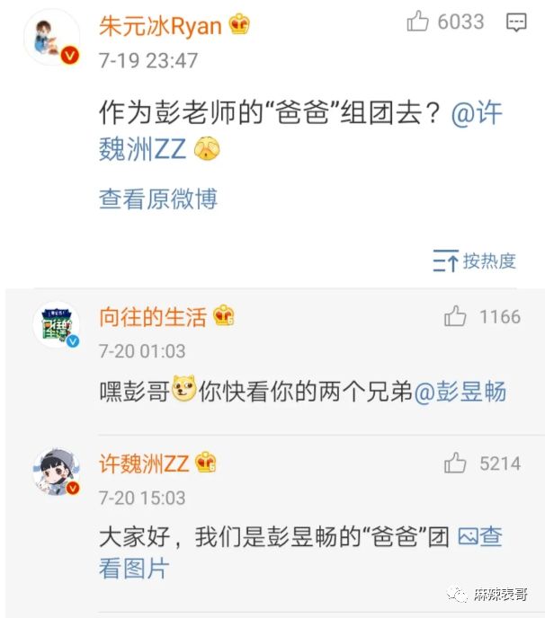 彭昱畅呢,也会私下互相和许魏洲互相认儿子。