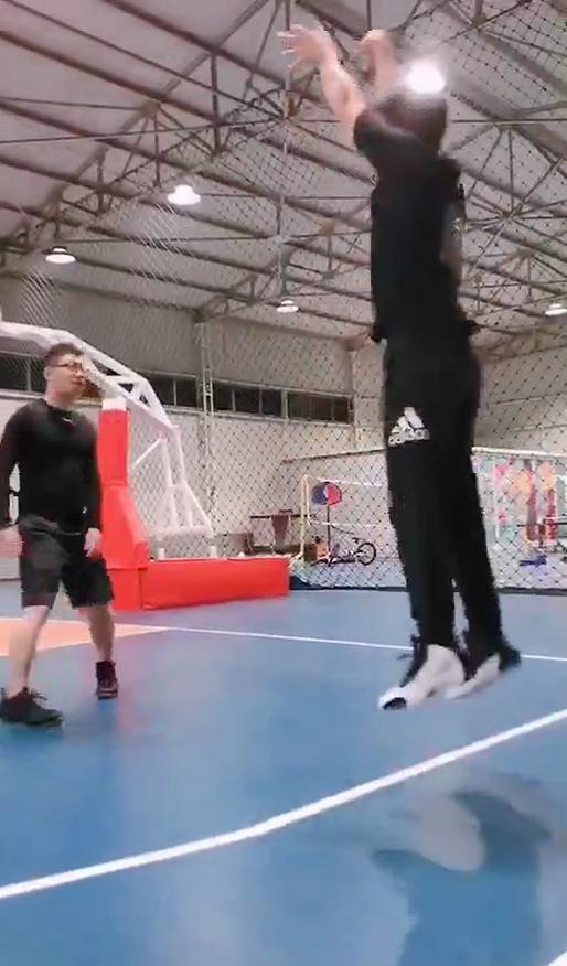 而就在最近,有网友也晒出了自己和李晨一起打篮球的视频。视频中,李晨穿一身黑色运动装,正在和一群球友练习投篮。李晨略带悠闲地运球走到三分线外,估量一下距离之后,起跳出手。不过遗憾的是第一次三分投篮没有投进。