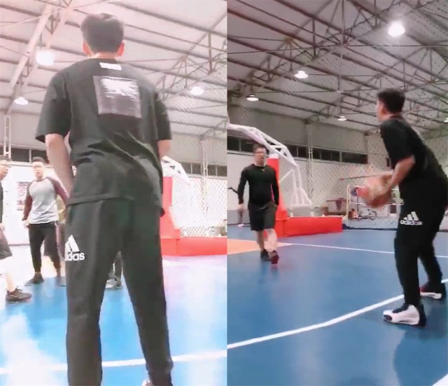 而一开始的投篮只是大家在热身练手调整状态,在练了一会投篮之后一行人分组开始打起了对抗。李晨在打篮球的时候再一次展示出自己“大黑牛”般的身体优势,从中场发球开始,一个人带着球冲过来连过对方几名防守队员,到罚球线就开始上篮,用一个假动作骗过防守人员后,李晨直接跃起投篮,篮球也应声而入,潇洒又利落。