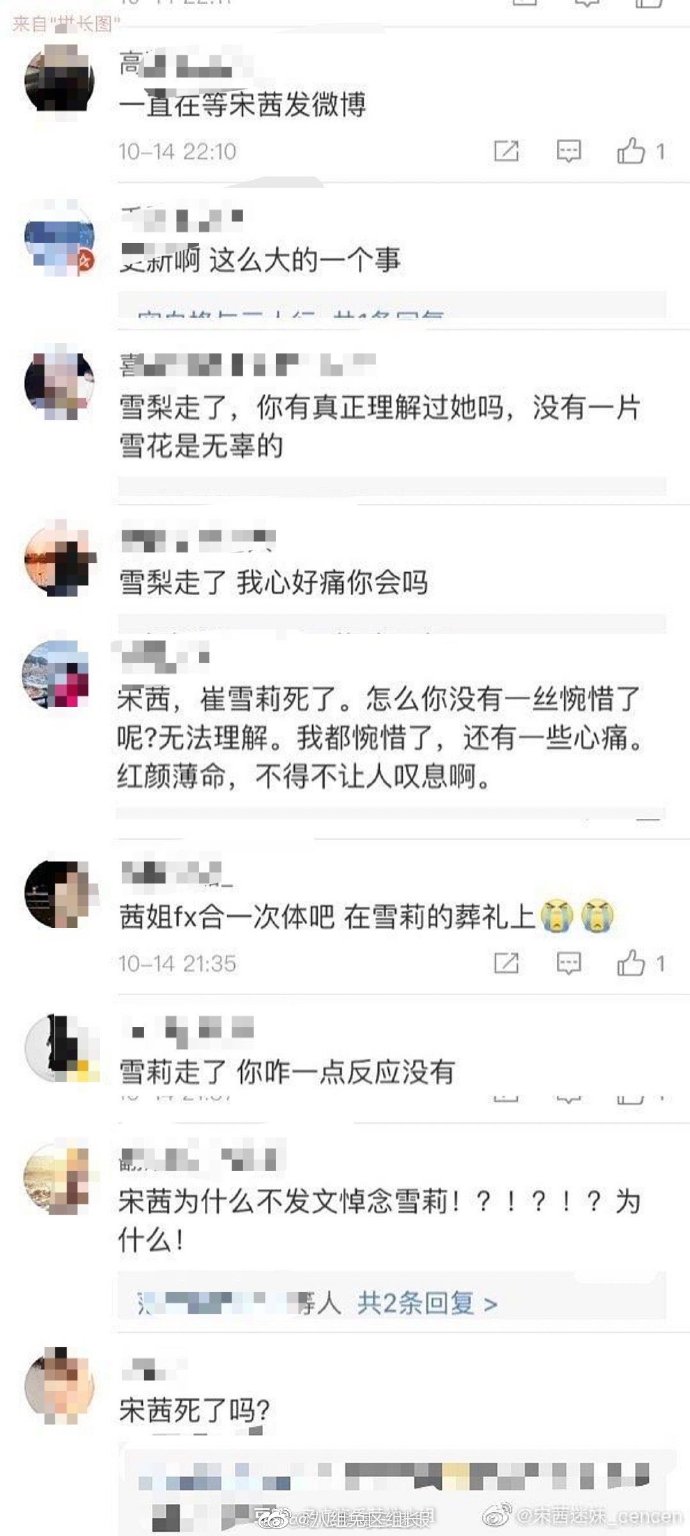 曾经,跟雪莉同为fx组合队友的宋茜这次还莫名其妙地被网友声讨了一番。这些文字,真的都有点看不下去,“你们做过组合,怎么不开导她?”“雪莉走了你一个微博都没发…”“为什么不悼念雪莉,死了吗?”…