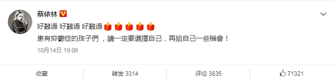 对于雪莉一事,不少国内明星也发博发表了惋惜。惋惜的同时,“抑郁症”及“网络暴力”是大家发声的主要理由。