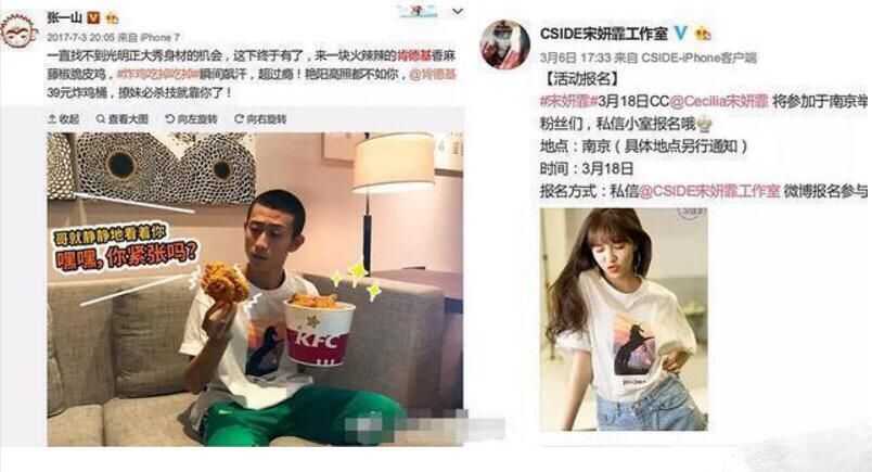 2017年6月,宋妍霏在微博上发布了一张照片,身穿黑色T恤,上面带着一个小孩的图案。几个月后,在张一山的微博中也出现了他身穿同一T恤的照片!
