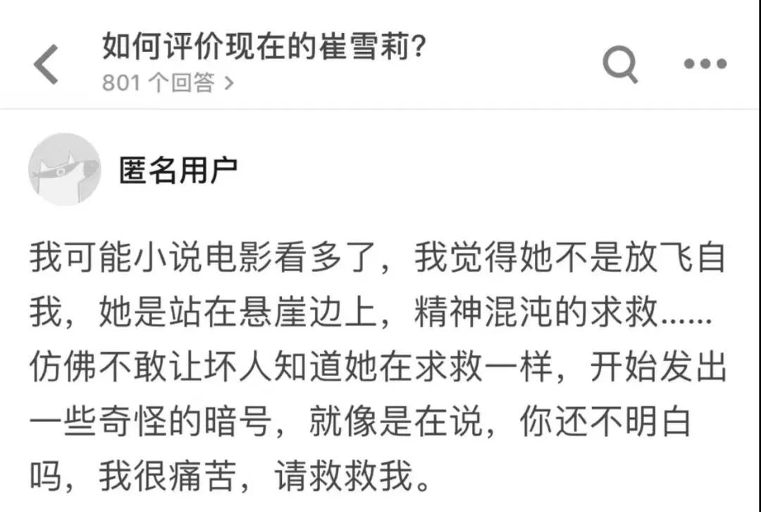 往后的崔雪莉是一种什么生活方式和心态我不知道,但我相信,她其实也在努力的表达自己的想法,以一种不太温和的方式。