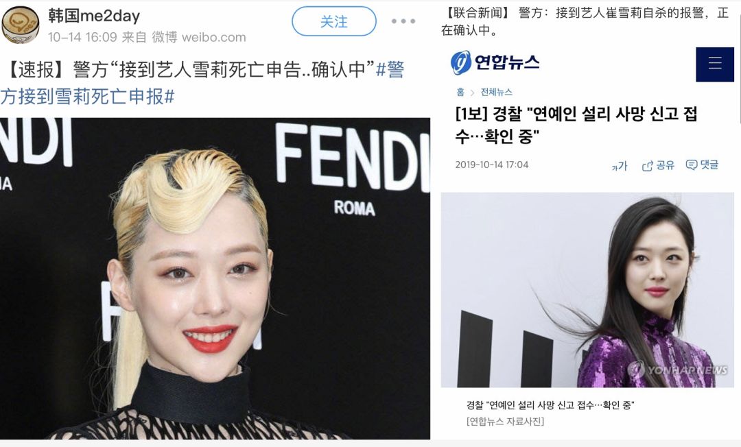 今天午睡刚醒过来,朋友圈、微博、各大APP,所有能推送新闻的地方,布满了崔雪莉离世的消息。