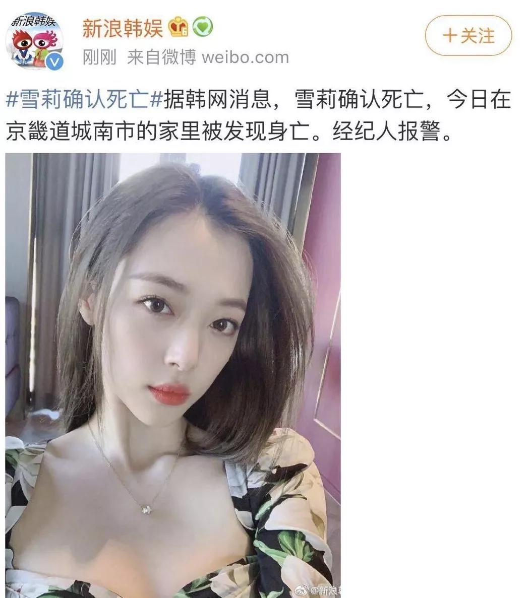 结果没过多久,韩方和新浪韩娱就确认了前SM女团f(x)组合成员崔雪莉死亡的消息。