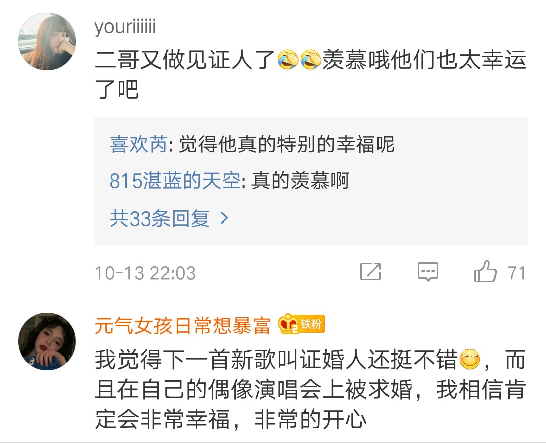 网友们也变身“柠檬精”,在评论区纷纷评论:“二哥又做见证人了,羡慕他们,也太幸福了吧”、“我也想二哥做我的证婚人”……不得不说王力宏真的很暖,做他的粉丝也太幸福了吧!