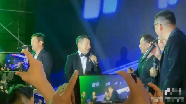 最后,几人在高高兴兴表演结束后,还站在台上勾肩搭背一起留下了合影,其中,李亚鹏更是单手高举,笑容十分灿烂。