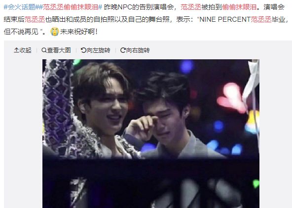 于是消息传开后,就有人质疑今天范丞丞在组合上哭是“装的”~然鹅这俩根本不是一回事好么!组合的主要资源来源其实是捧红他们的平台方,一些以组合形式接的活动也都由“中间公司”来负责,跟福西西自己的公司没太大关系。再者说,之前锤爷就说过了,由于几个大男孩的年龄相仿、都是爱玩爱闹的年纪、有共同语言,虽然偶尔有一些分歧争执但总的来说关系还是不错的,跟朋友相处久了舍不得分开而激动落泪这不是人之常情么?不至于有“表演”成分的,就是真情流露而已。