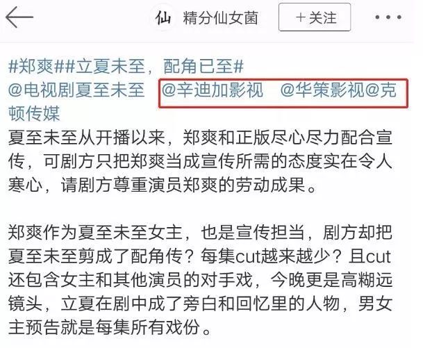 还有之间郑爽粉丝因为戏份问题撕《夏至未至》的剧方。