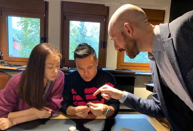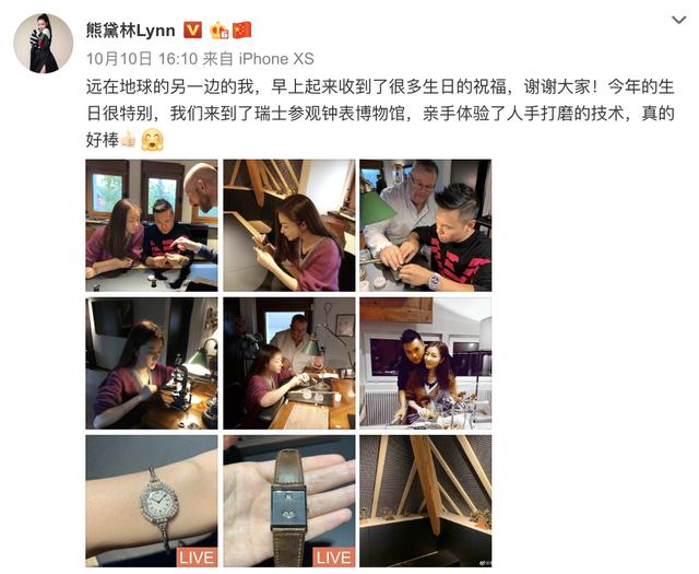 生日当天,熊黛林分享了和老公一起在瑞士参观钟表博物馆,并且亲手体验了人手打磨的技术。