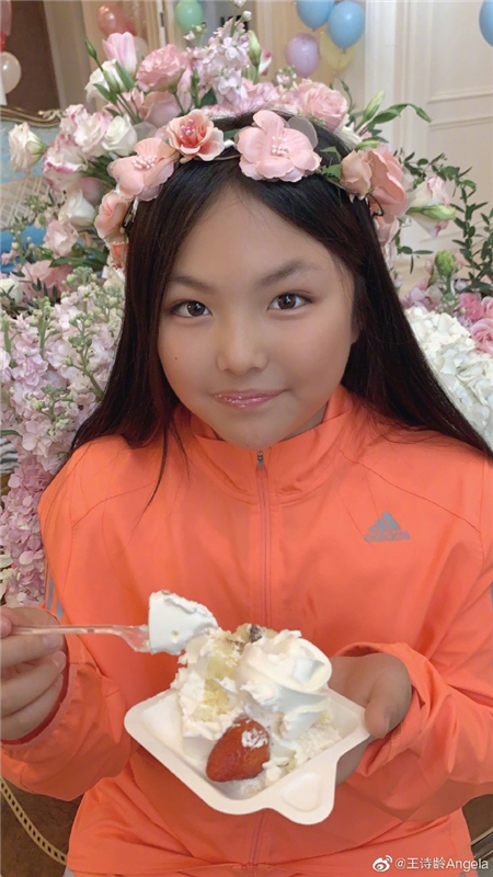 而最后一张图中,王诗龄也晒出自己的近照,十岁的王诗龄穿着一身橘色的运动套装,头顶玫瑰花环十分精致,而可爱的王诗龄则吃着蛋糕的同时,乖巧的看着镜头,与往常想必,王诗龄似乎清瘦了一些,与妈妈李湘简直越来越相似了。