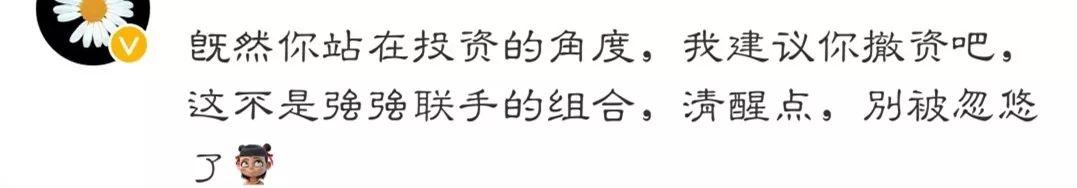 更有人直言:赶紧撤资吧,这不是强强联合的组合,清醒点,别被忽悠了。