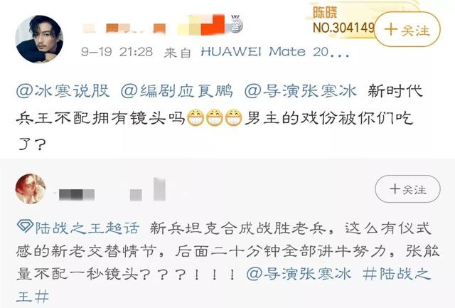 陈晓粉丝反应更激烈,认为陈晓是王一博前辈,和他一起演双男主应该做一番,但投资方话里话外却是另一个意思,说是从投资角度考虑,但之前《陆战之王》合作就并不愉快,接了《冰雨火》是又要被坑一次吗?